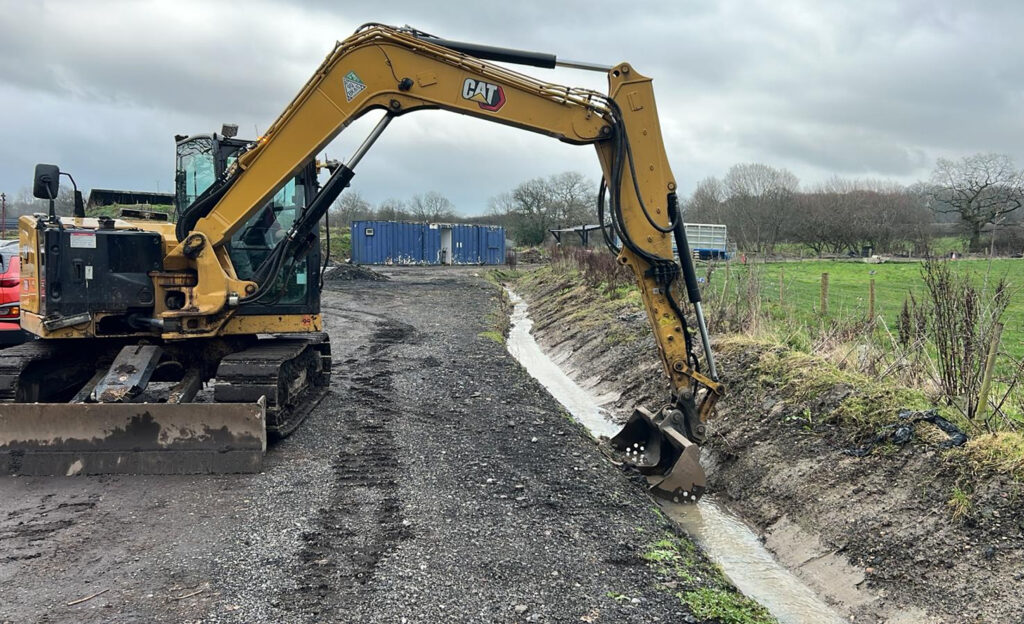 Drainage & Ditching Ditch Excavation & Ground Levelling Ditch excavation and ground levelling works carried out to improve drainage and prevent surface water erosion along a busy site access road in the Midlands. VIEW CASE STUDY