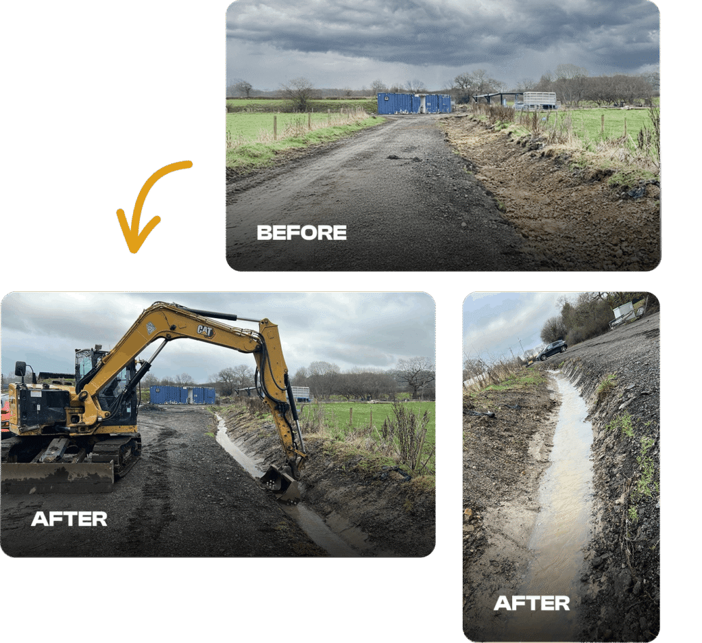 If you’re planning drainage or ditching works or need advice, get in touch.We’ll review the site, discuss requirements, and provide a clear estimate.